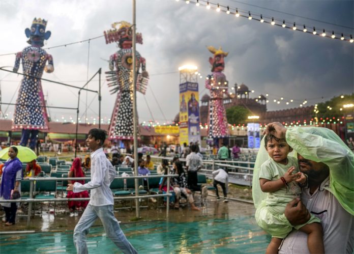 Heavy rainfall on Thursday dampened Dussehra celebrations across New Delhi, disrupting the traditional effigy burning events that were to be attended by Prime Minister Narendra Modi and Home Minister Amit Shah. The sudden downpour forced the cancellation of major events, disappointing many across the capital.